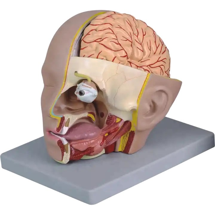 The “Head With Brain Model” is a specialized educational tool meticulously designed for educational purposes. This model offers a comprehensive representation of the head and brain anatomy. It serves as a crucial aid, allowing medical professionals to study and understand the intricate details of cranial structures. Specifically tailored for training purposes, it significantly enhances knowledge and comprehension of head and brain anatomy, crucial for medical education and diagnosis.