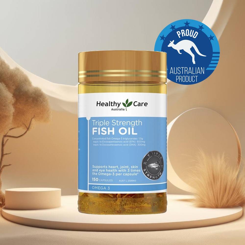 Healthy Care Triple Strength Fish Oil supports heart, joint, skin and eye health wit h3 times the Omega-3 per capsule (Compared to regular fish oil 1000mg Omega-3 Capsule). Omega-3 fatty acids are essential for maintaining general health and wellbeing. Healthy Care’s Triple Strength Fish Oil is derived from deep sea fish and delivers 3 times the Omega-3 per capsule than a standard fish oil capsule.