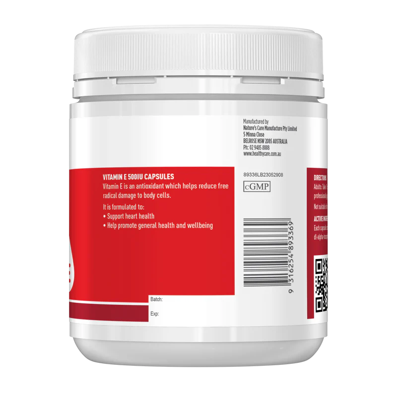 Healthy Care Vitamin E 500IU - 200 Capsules